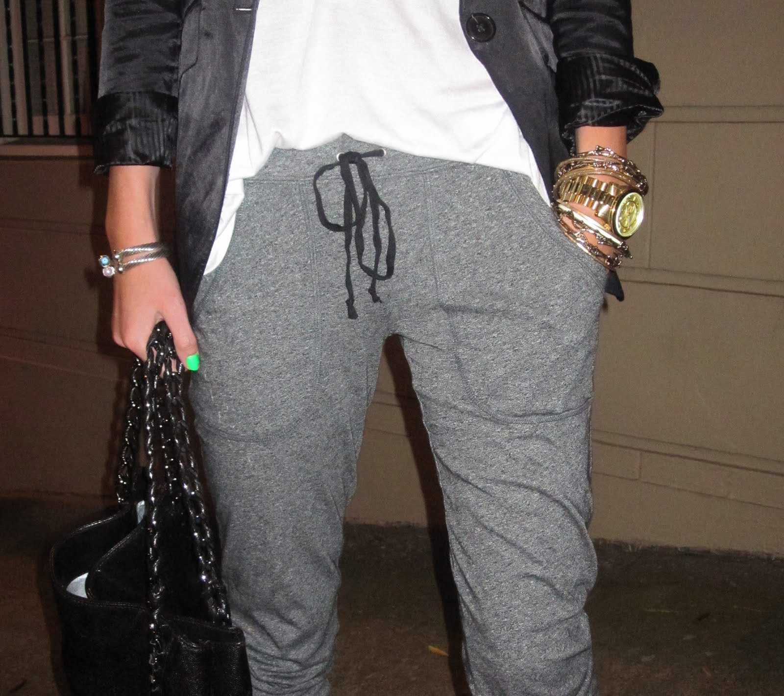 June 20, 2010 Saturday Night Sweats Blazer: BR Monogram. Tank: Patterson J. Kincaid. Sweats: Madewell. Shoes: Loeffler Randall. Purse: Chanel. Jewelry: Kenneth J. Lane Couture, Michael Kors, F21, David Yurman, GAP, Banana Republic, Jcrew. Load More Subscribe Exclusive content & weekly updates Scroll Up