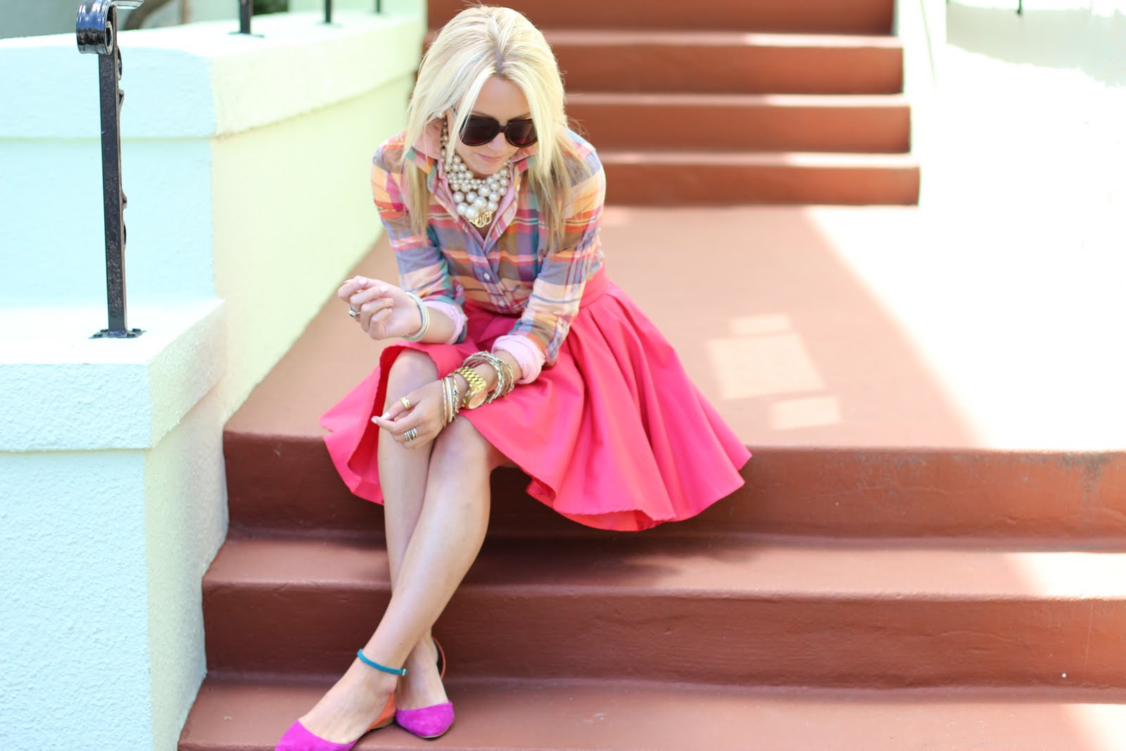 Shirts:Jcrew/RL. Skirt: c/o Lulus.com. Shoes: Zara. Sunglasses: Karen Walker. Jewelry: David Yurman, Pomellato, Michael Kors, Gap, BR, Max& Chloe c/o accessorize. Nails: Butter London ‘Teddy Girl’.