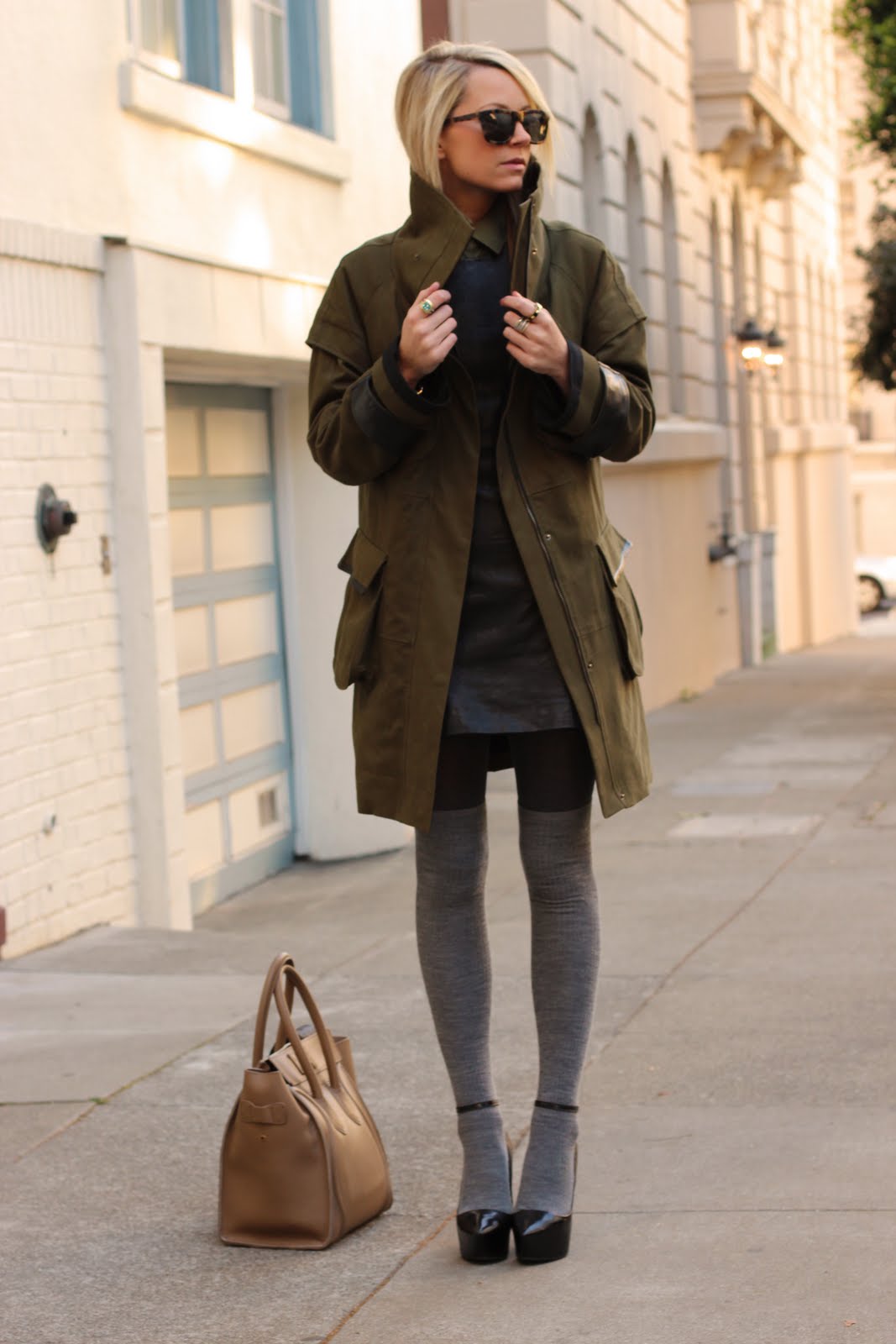 Jacket: Cynthia Steffe. Dress: Gap. Top: Equipment. Tights: H&M. Socks: Madewell. Shoes: Theysken’s Theory. Purse: Celine. Sunglasses: Karen Walker. Jewelry: David Yurman, Gap, BR, Stella&Dot, YSL, Pomellato, C Wonder.