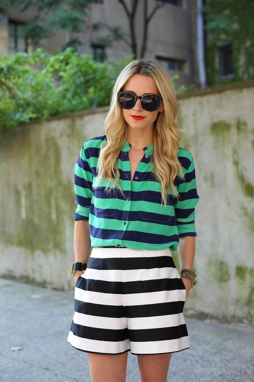 Shorts: ASOS. Top: Equipment (also love this one). Shoes: Christian Louboutin. Bag: Hunter. Sunglasses: Karen Walker ‘Super Duper’. Lips: Stila ‘Beso’. Jewelry: Hermes, Michael Kors Watch, Stell and Dot, Pomellato.