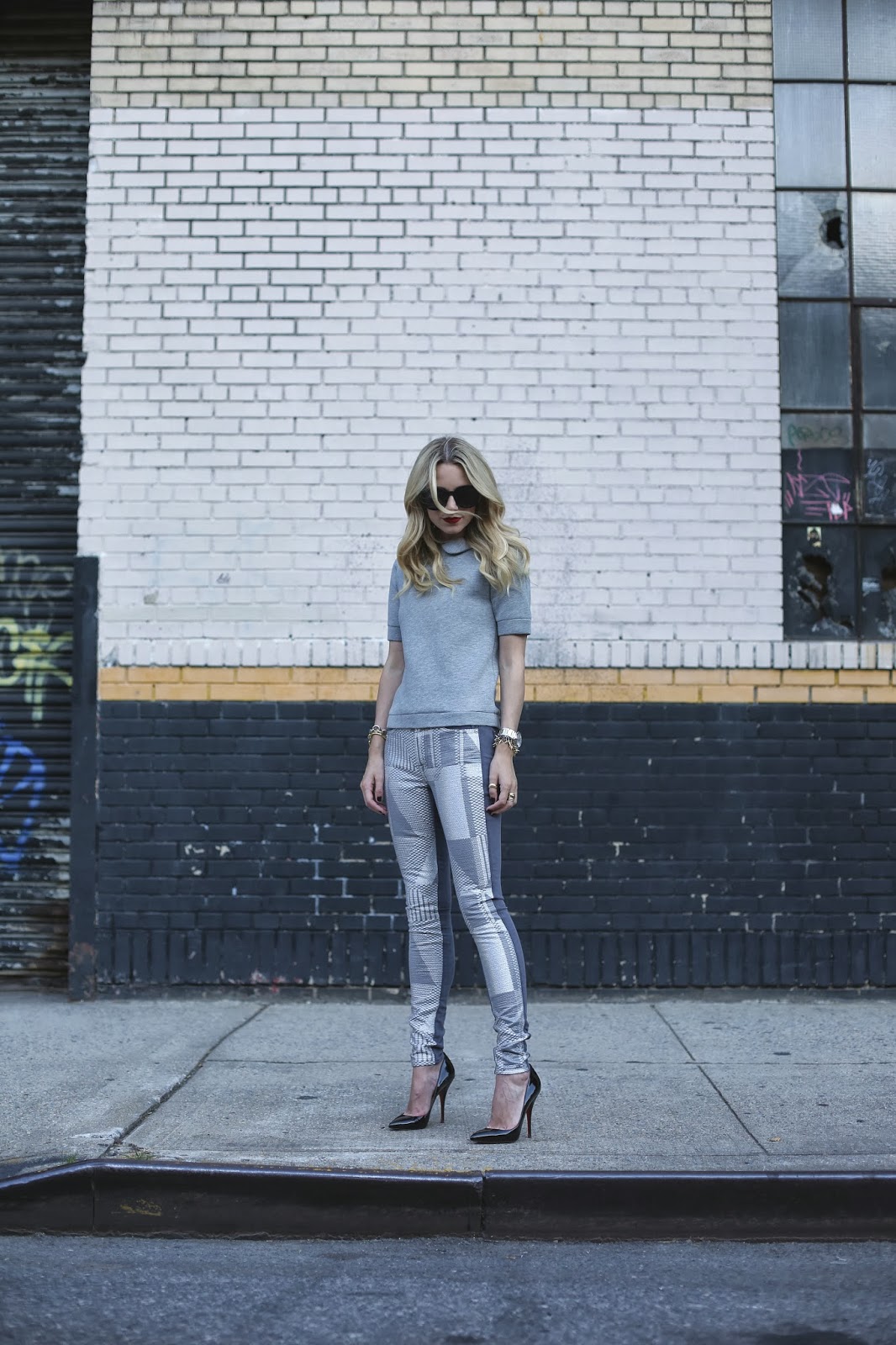 Denim: Malhia Kent X 7FAM Pieced Skinny c/o. Peter Pan Collar Sweatshirt: H&M (old). Shoes: Christian Louboutin. Sunglasses: Karen Walker ‘Super Duper’. Nails: Deborah Lippmann ‘Dark Side of the Moon’. Lips: Stila ‘Beso’. Jewelry: Cartier, Pomellato, David Yurman.