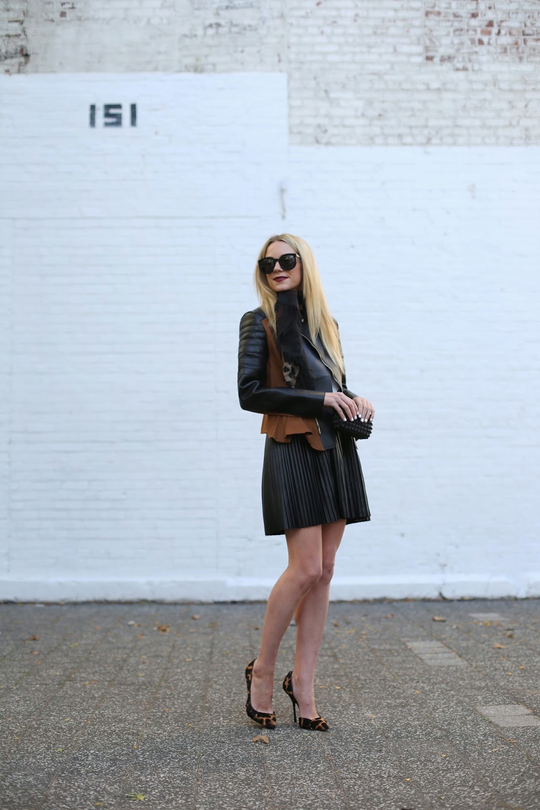 Jacket: Phillip Lim via Neiman Marcus. Skirt: Tibi (similar here). Shoes: Giuseppe Zanotti (old but love these and these). Tee: Madewell. Sunglasses: Karen Walker ‘Super Duper’. Lips: Deborah Lippmann ‘Under a Spell’. Nails: Deborah Lippmann ‘Amazing Grace’. Clutch: Loeffler Randall. Scarf: BR.