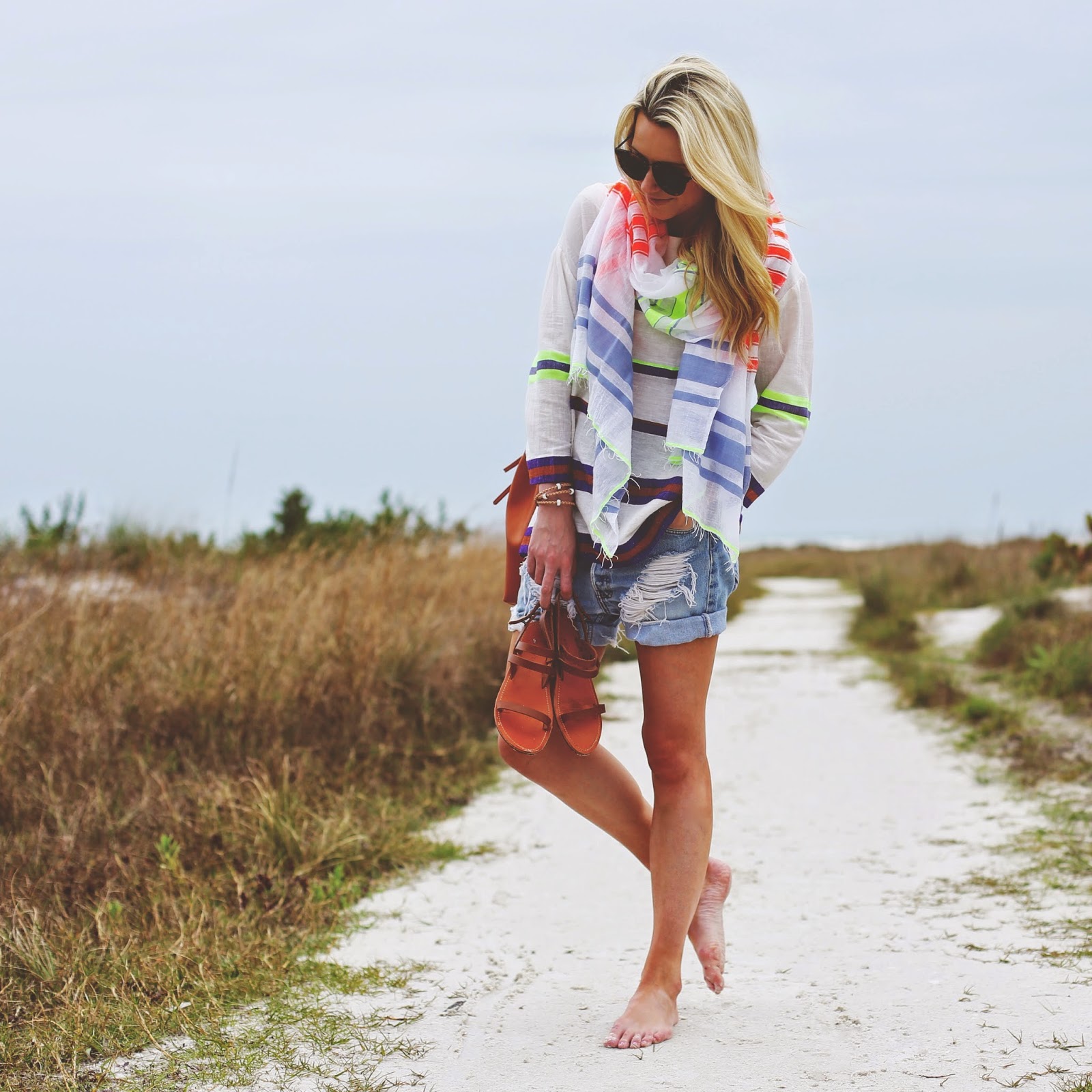 Top: LemLem (similar here). Scarf: LemLem (similar here). Short: Vintage Levi. Bag: Mansur Gavriel. Shoes: Everlane. Sunglasses: Karen Walker ‘Harvest’.