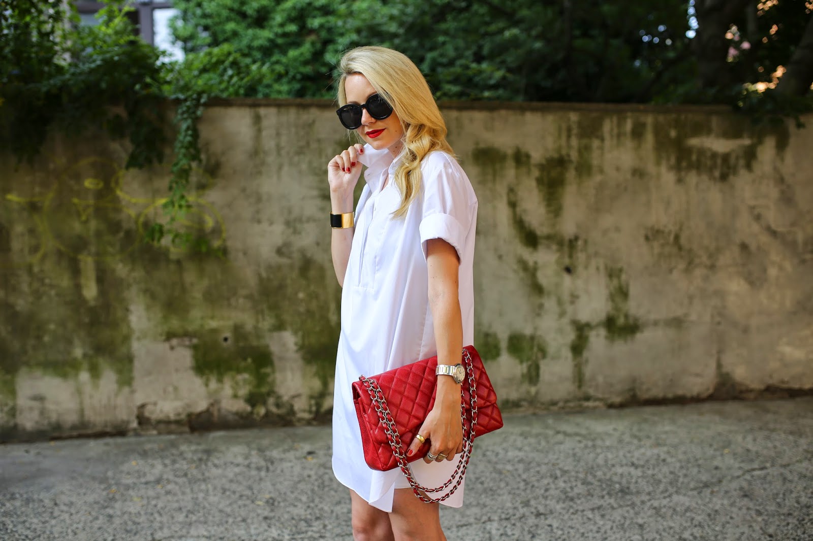 Dress: Topshop (similar here). Shoes: Bottega Veneta. Bag: Chanel c/o BellaBag (also in black here). Sunglasses: Karen Walker ‘Super Duper’. Lips: Stila ‘Beso’.