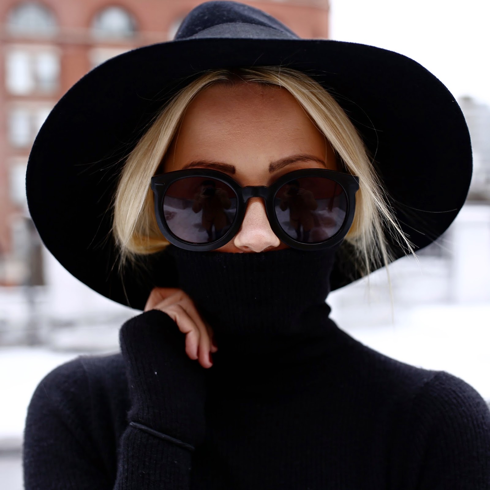 Turtleneck: Old, similar. Hat: Eric Javits. Sunglasses: Karen Walker ‘Super Duper’.