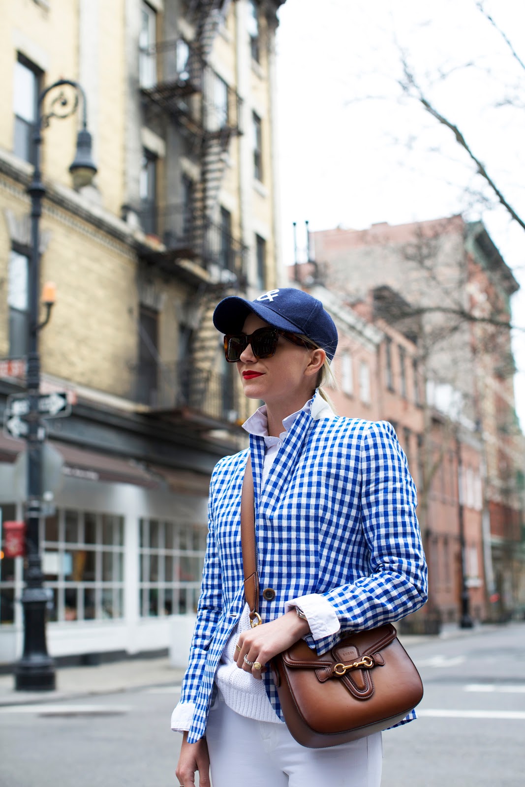 Blazer (also comes in pink and matching shorts here). Denim. Shoes: Jack Purcell. Lips: Stila ‘Beso’. Sweater. Hat: Gap (old, but similar cute one here).