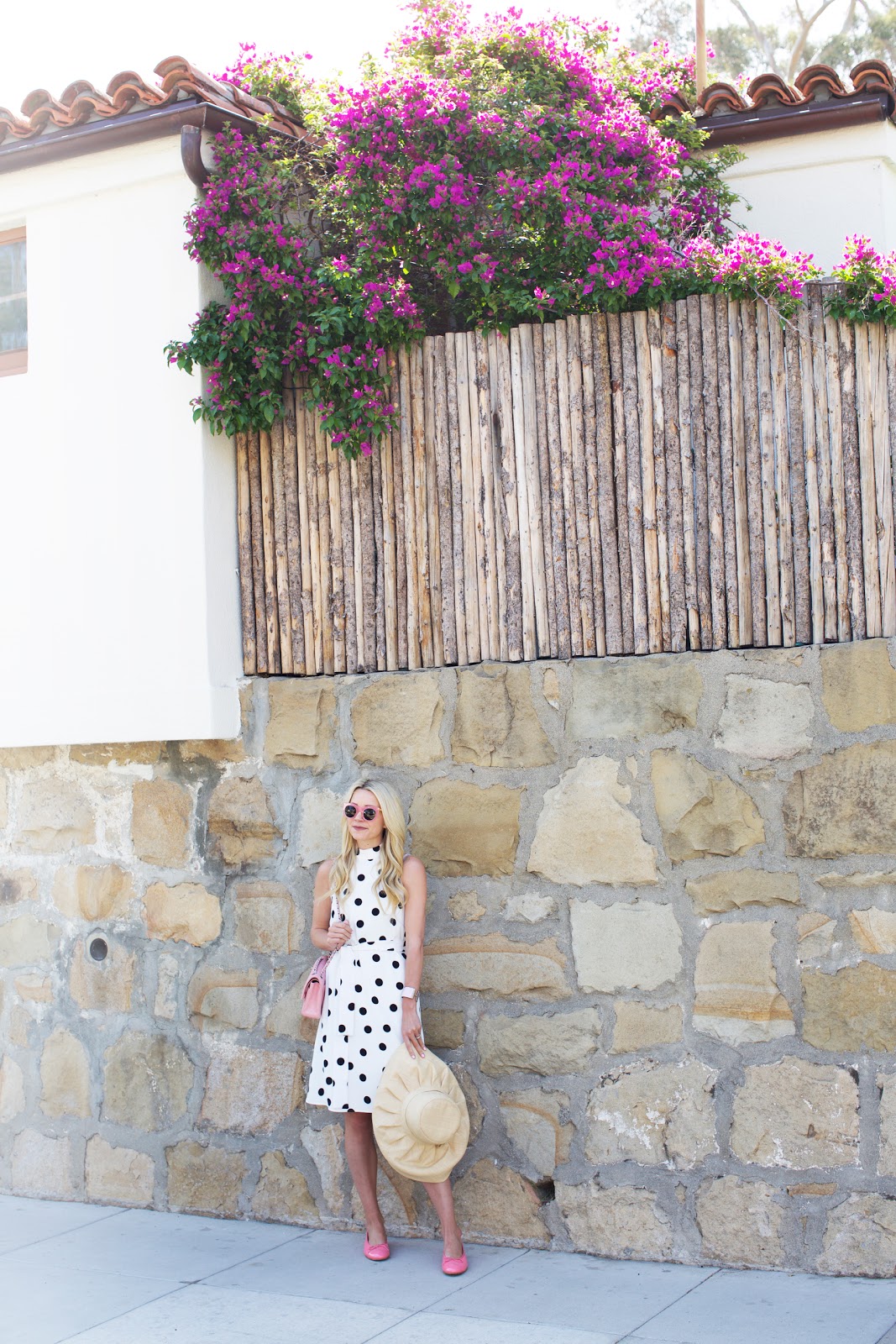 Dress: Ann Taylor. Sunglasses: Illesteva (also here and love these under $100). Nails: Formula X. Shoes: Chanel (also love these pink flats). Hat: Pilyq.