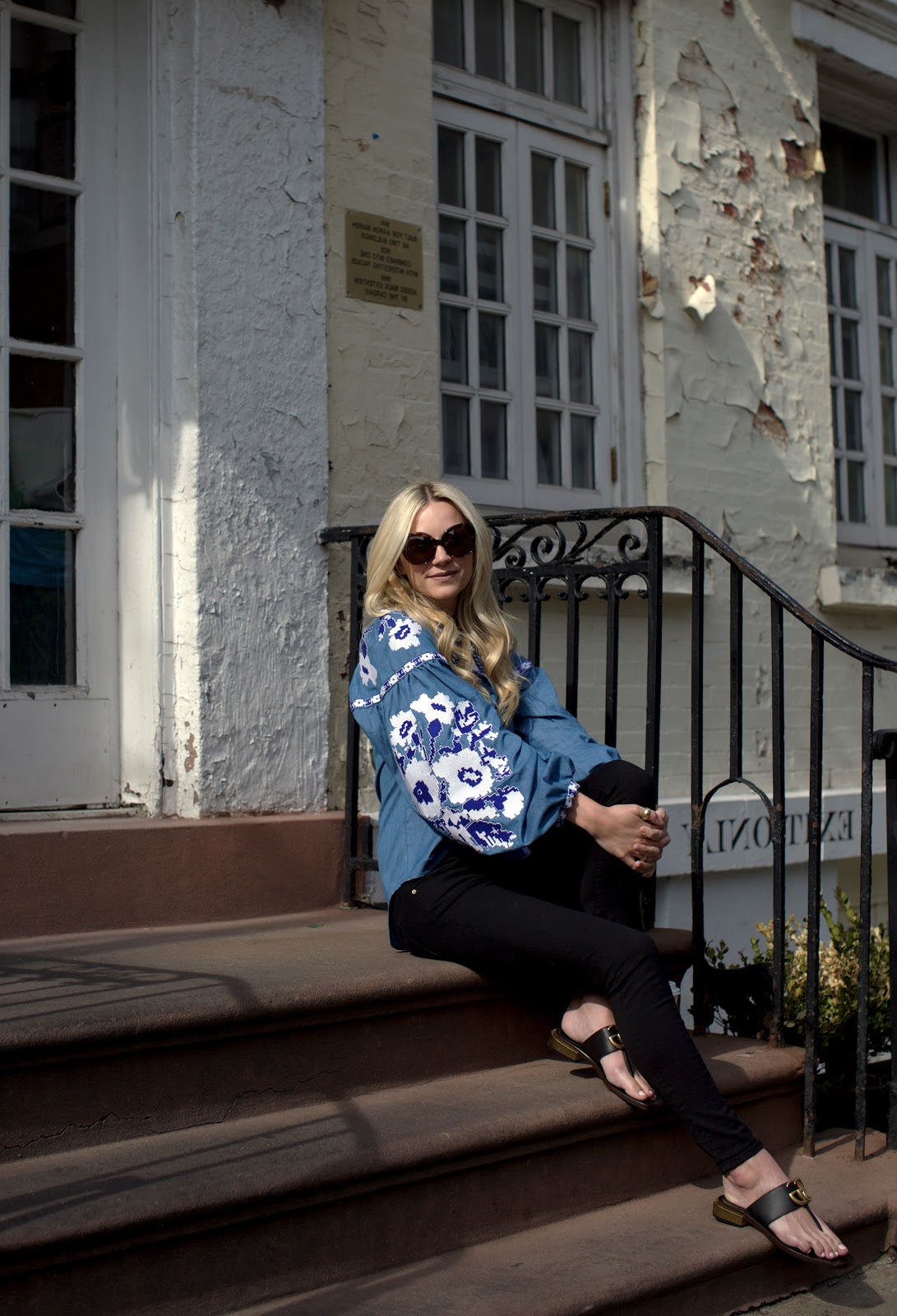 Top: March11 (also wearing a March11 dress here). Denim: FRAME. Sandals: Gucci (also in brown). Lips: Stila ‘Baci’. Bag: Mansur Gavriel (similar here). Necklace: Bauble Bar (also love this one).