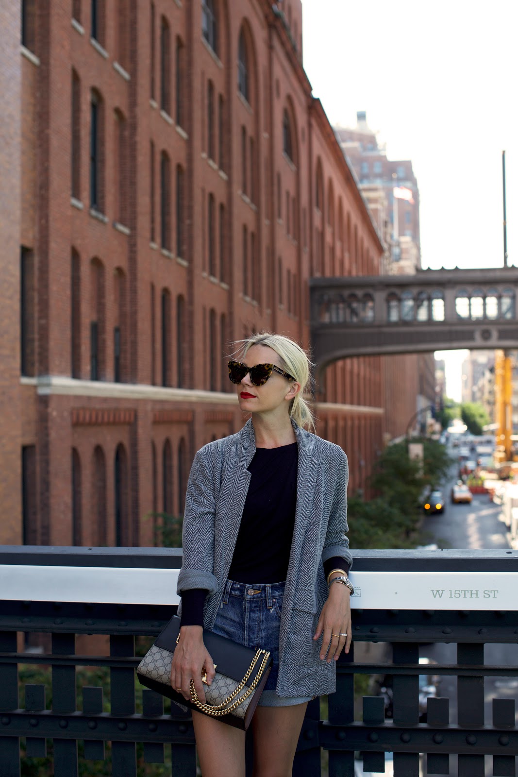 Slouchy Blazer (also love this one). Denim Shorts: AYR. Sunglasses: Karen Walker (on sale). Pocket Tee. Lips: Stila. Shoes: Chanel (similar here). Bag: Gucci. Thank you to Nordstrom for partnering on this post.