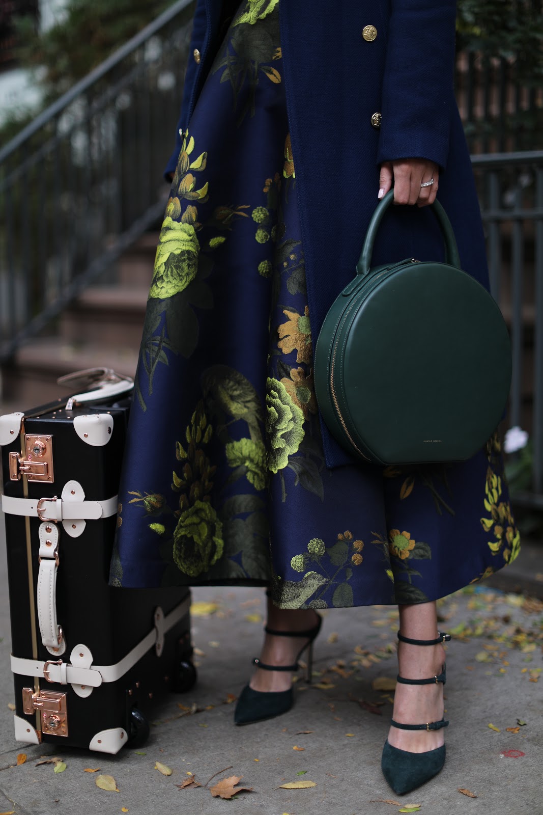 Dress: ASOS (one of my favorites I have found in a long time – shop my other ASOS picks below). Bag: Mansur Gavriel. Shoes: Club Monaco (also love them in this silk tie print). Coat: Smythe. Luggage: Steamline. Sunglasses: Linda Farrow.