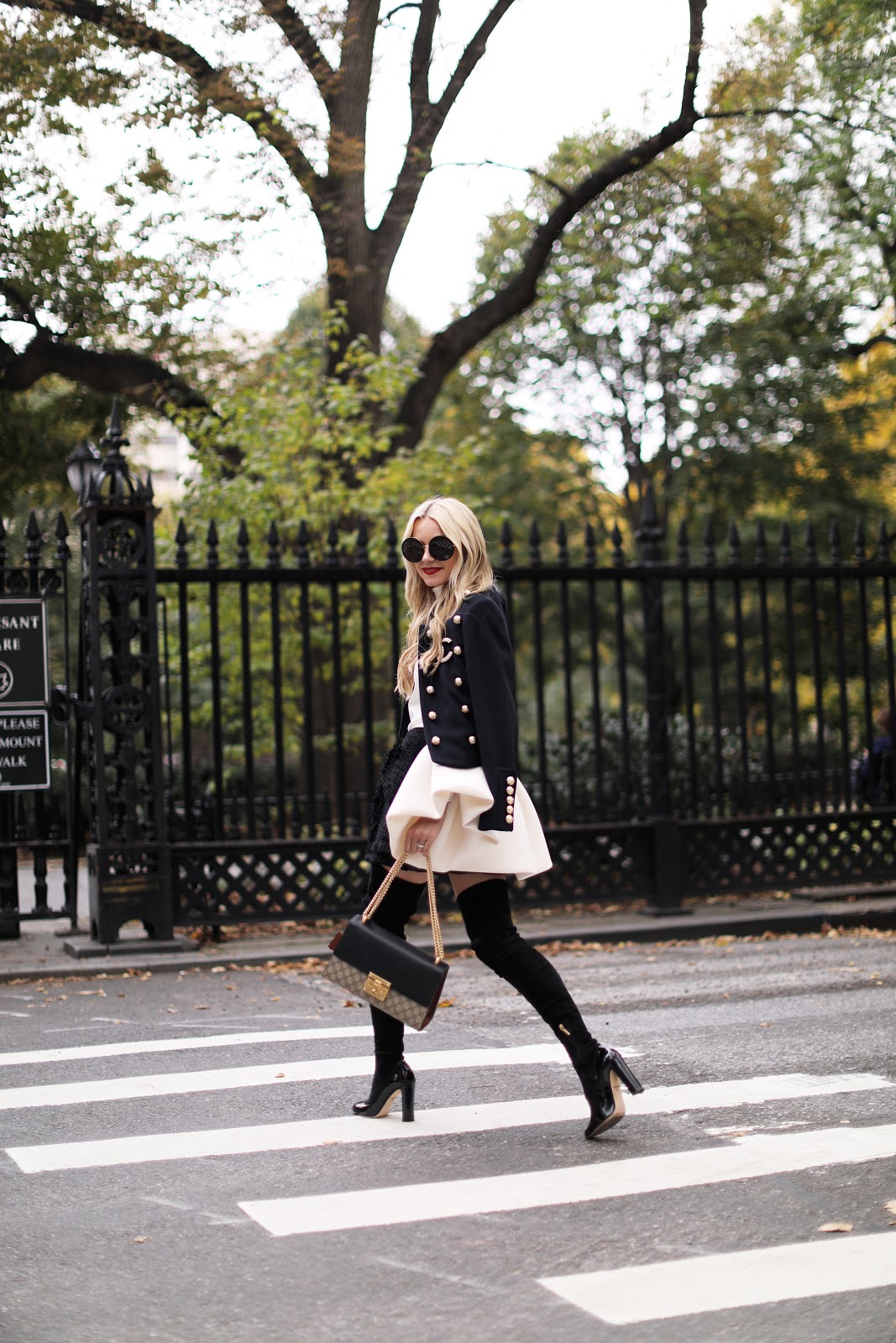 Jacket: Burberry (similar here, also love this Burberry coat on sale). Top: Brandon Maxwell. Boots: Dolce and Gabbana (old, similar here, here and here). Skirt: Goen J. Sunglasses: Linda Farrow. Lips: Stila ‘Beso’. Thank you to Nordstrom for partnering on this post.