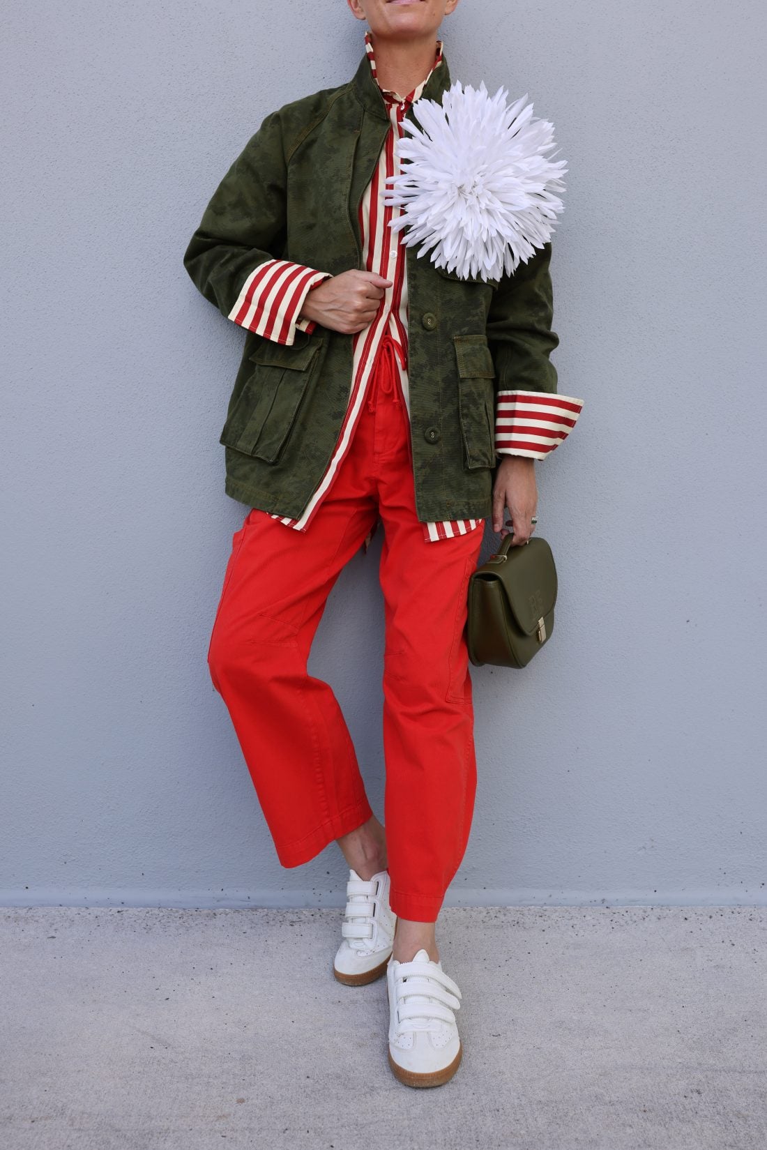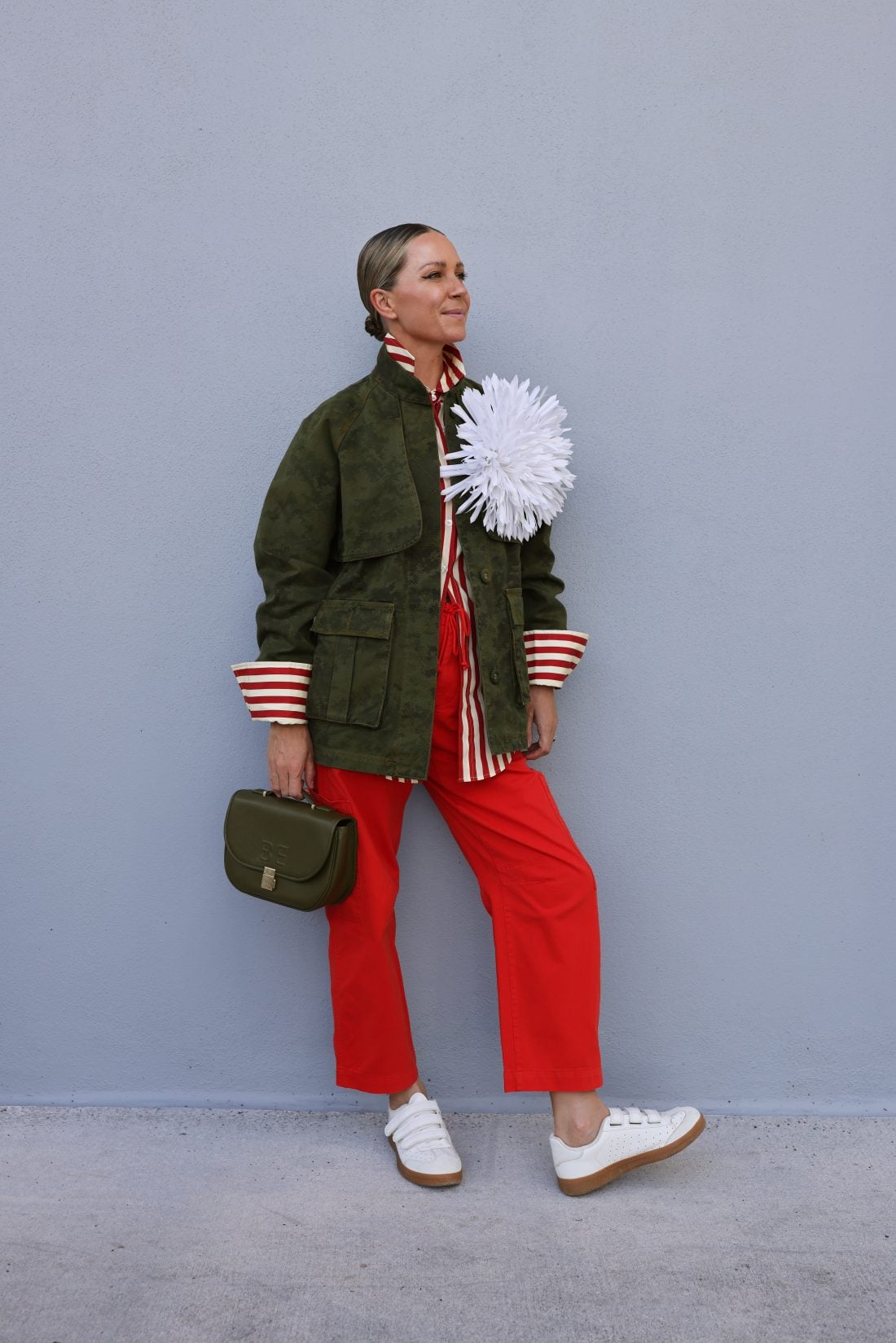 Jacket // Pants here and here // Stripe Top // Shoes // Flower